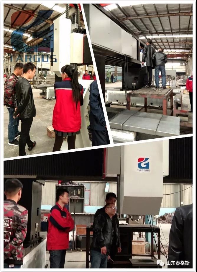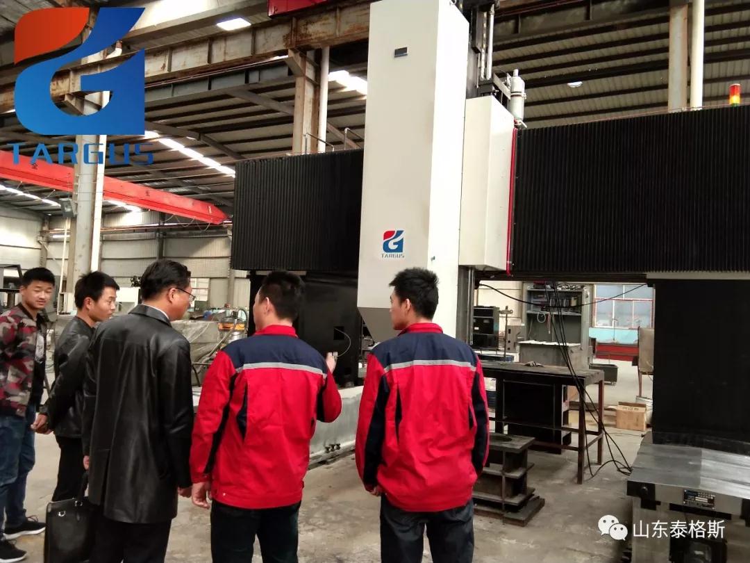 神通集團的張部長帶領公司一行人做客山東泰格斯中小設備基地,來驗收泰格斯的專利設備TLMZ1616高速數控平面鉆床。