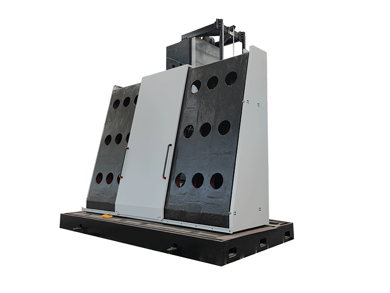主要大件如床身、立柱、工作臺及彎板等均系鑄造件,經(jīng)熱處理時效處理,剛性穩(wěn)定性俱佳。